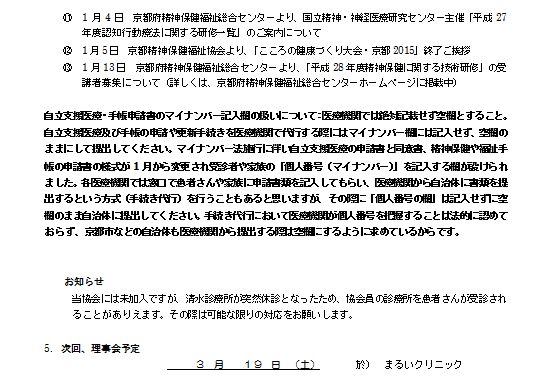 ② 5月26日 京都精神保健福祉協会より、「平成27年度第1回総会の開催について」→